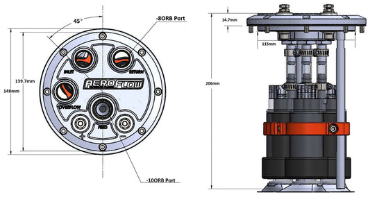 LOW PROFILE TRIPLE PUMP HANGERFUEL 450 525lph POLISHED BILLE