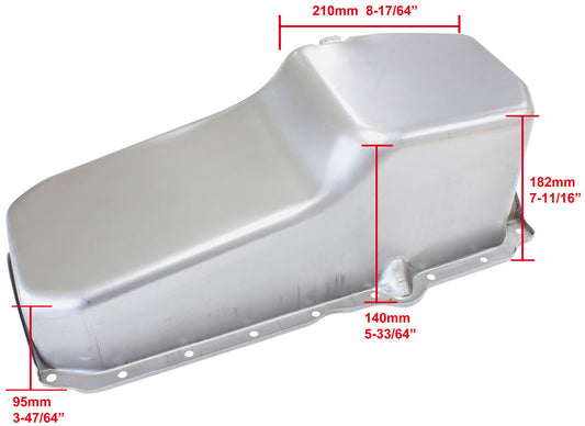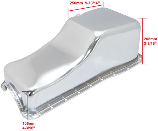 STOCK OIL PAN SBC LATE '86 ON RH/SIDE DIPSTICK CHROME
