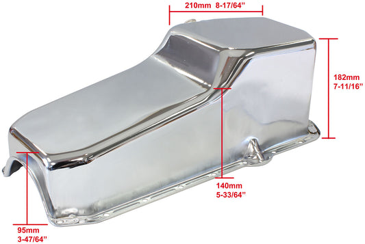 STEEL STOCK OIL PAN SBC CHROM LH/SIDE DIPSTICK REAR SUMP