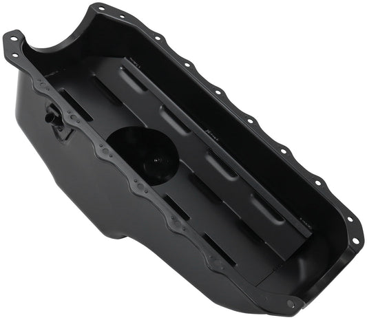 STEEL STOCK OIL PAN SBC BLACK RH/SIDE DIPSTICK REAR SUMP