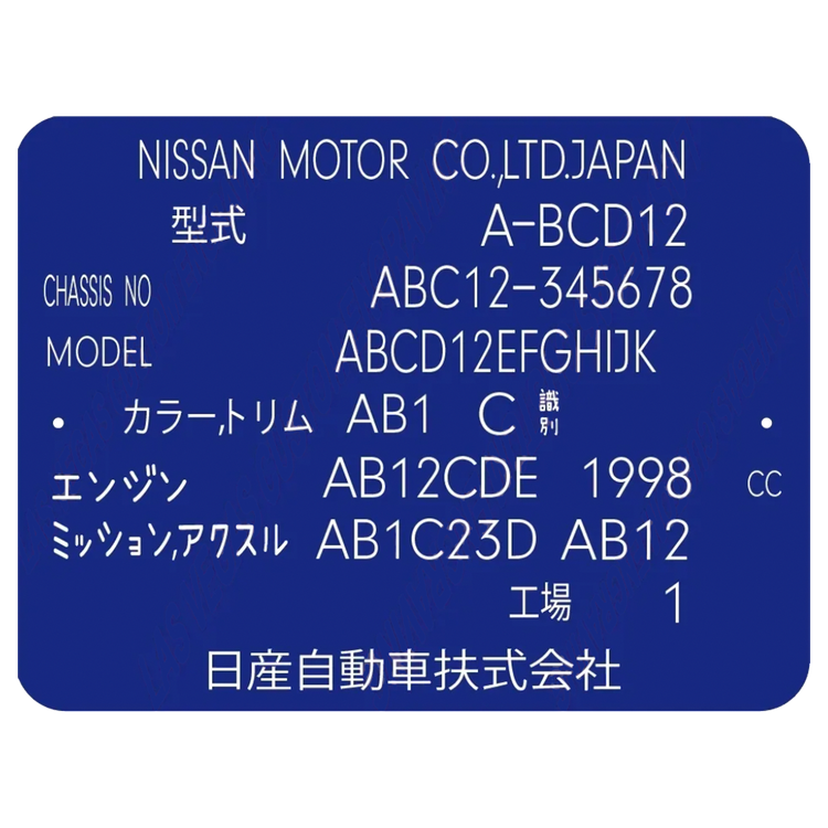 NISSAN BLUE VIN TAG